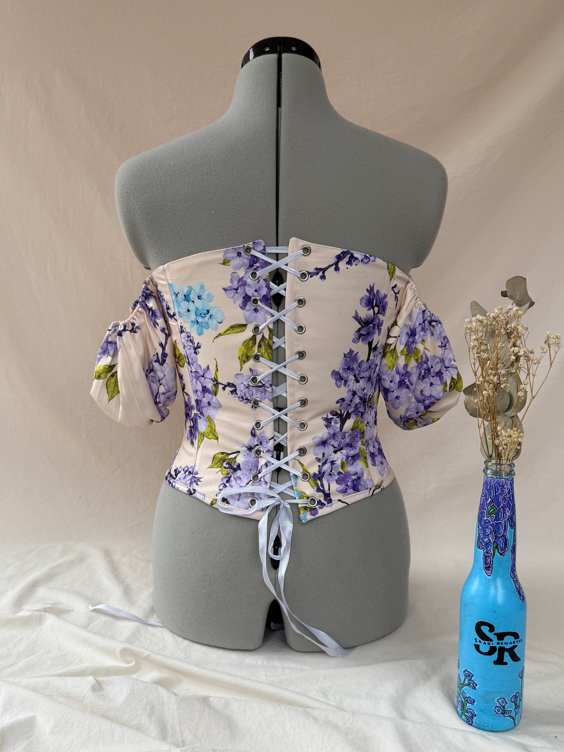 Reworked Floral Wisteria back lacing corset - XS/S